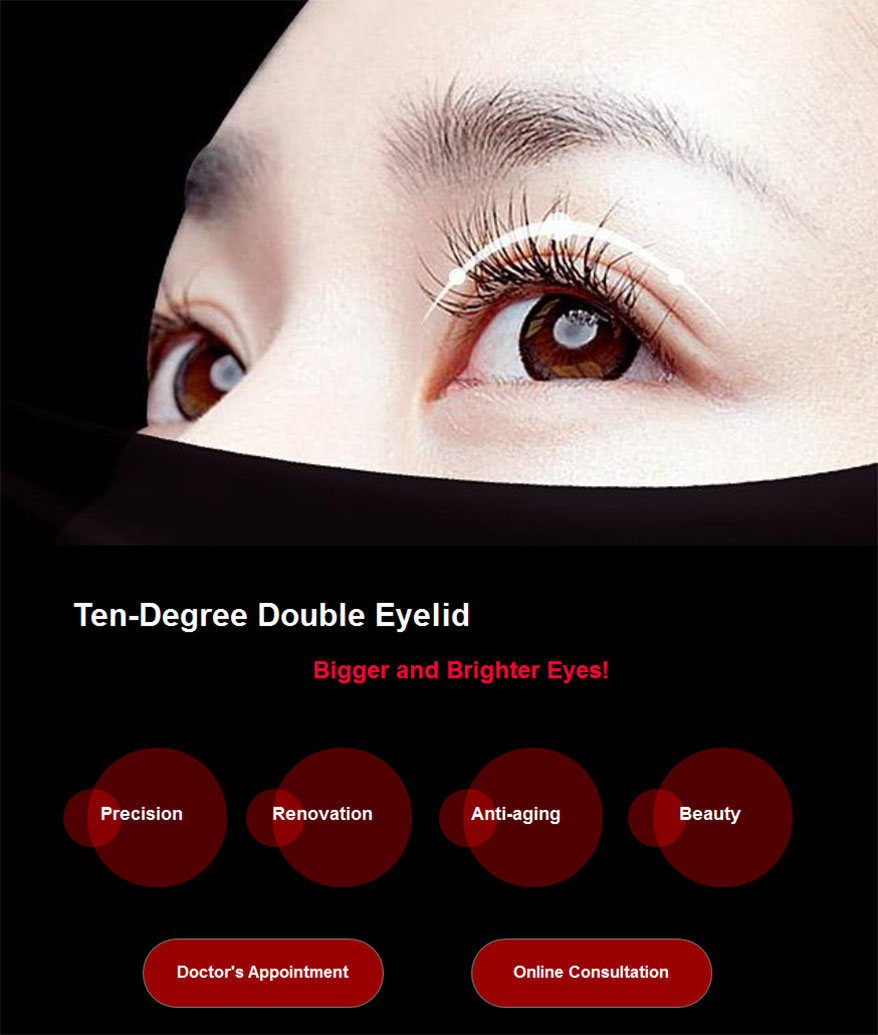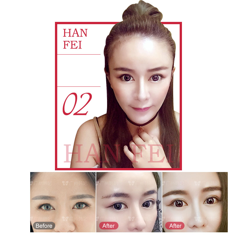 It is a successful case of Hanfei research, comprehensive aesthetic interpretation and personalized custom design. According to the golden aesthetic standards, with the eye's top ten aesthetic standards, also to different ages, occupation and characteristics of facial skin around the eyes.