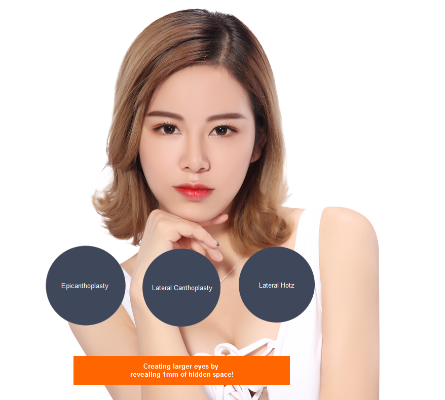 Eyes with short width or inner part covered by epicanthus are fixed with canthoplasty in Hanfei. There are different types of canthoplasty including epicanthoplasty, lateral canthoplasty, and lateral hotz.