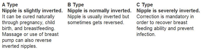 Lack of supporting tissue for nipples or being too short often cause inverted nipples.