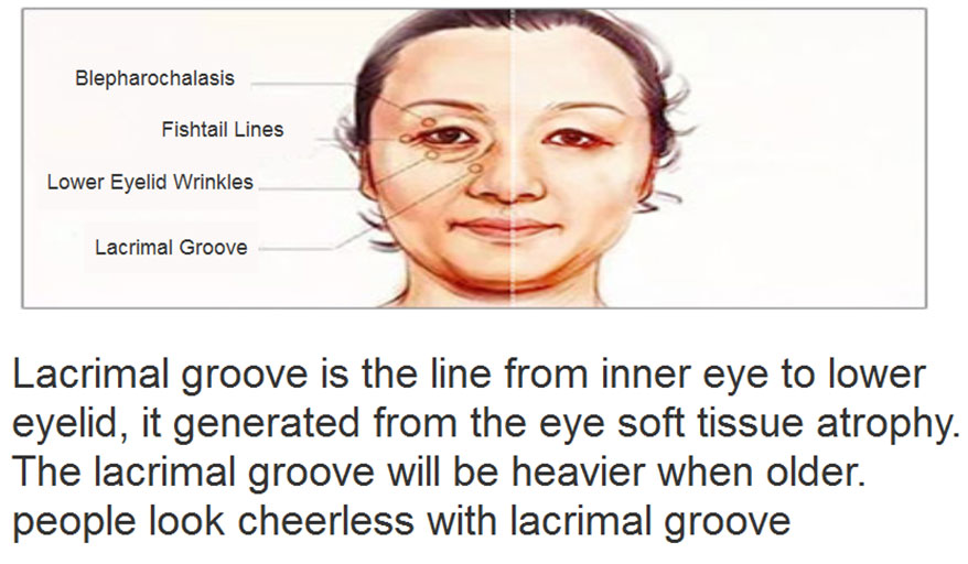 1 Why autologous fat suitable for filling lacrimal groove ? Lacrimal groove causes from Subcutaneous fat atrophy, Autologous Fat Lacrimal Groove Filling supply t