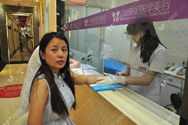 Nurse helps Su draw blood and measure blood pressure for ensuring surgery safety