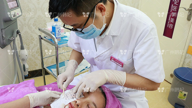 Before the therapy, the medics applied anaesthetic on Dingfan's face and put a plastic wrap on the anesthetic to prevent it from volatilizing. About half an hour later, the nurse removed the anesthetic and disinfected her face with alcohol, which was the prerequisite of the therapy.