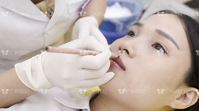The cosmetologist first conducted local anesthesia treatment on Julie's lip, and then selected the appropriate color for her lip according to her skin color, original lip color and personal preferences.